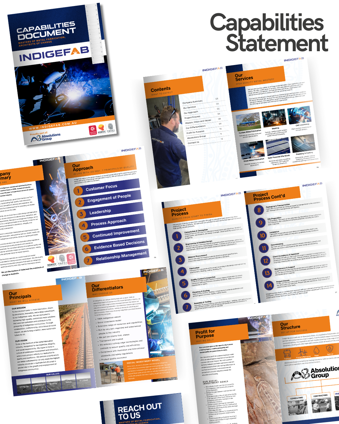 While IndigeFab had the technical capability and project experience to compete at a high level, their brand and marketing materials did not yet reflect the scale or calibre of their work. They needed a professional identity and a suite of assets that would support tendering, stakeholder engagement and business development within a competitive, compliance-driven industry.