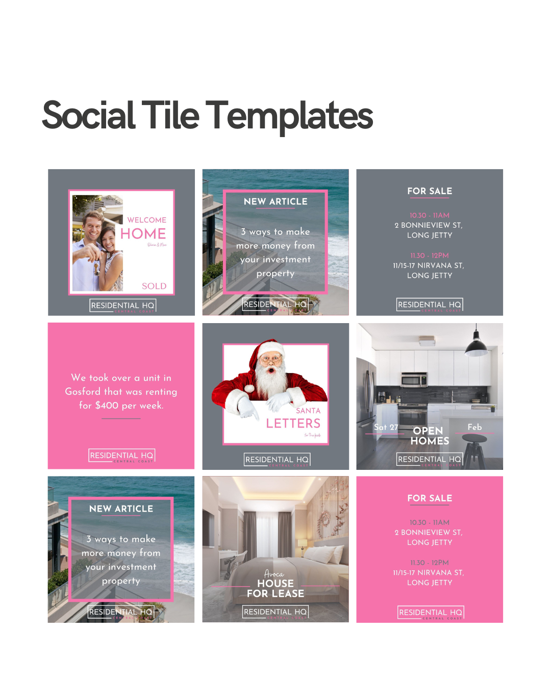 Templates and assets to support ongoing listings, client communication and marketing activity