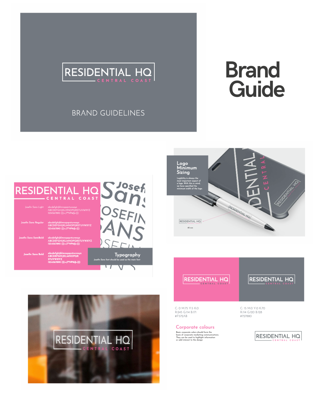 The Central Coast real estate market is highly competitive, with many agencies relying on similar visuals, language and positioning. Despite Residential HQ’s strong reputation and experience, their existing brand no longer reflected who they were or where they were heading. They needed a refreshed identity that felt modern, confident and distinctive, while supporting the extensive range of marketing materials required in real estate, from property campaigns to day-to-day client communications.